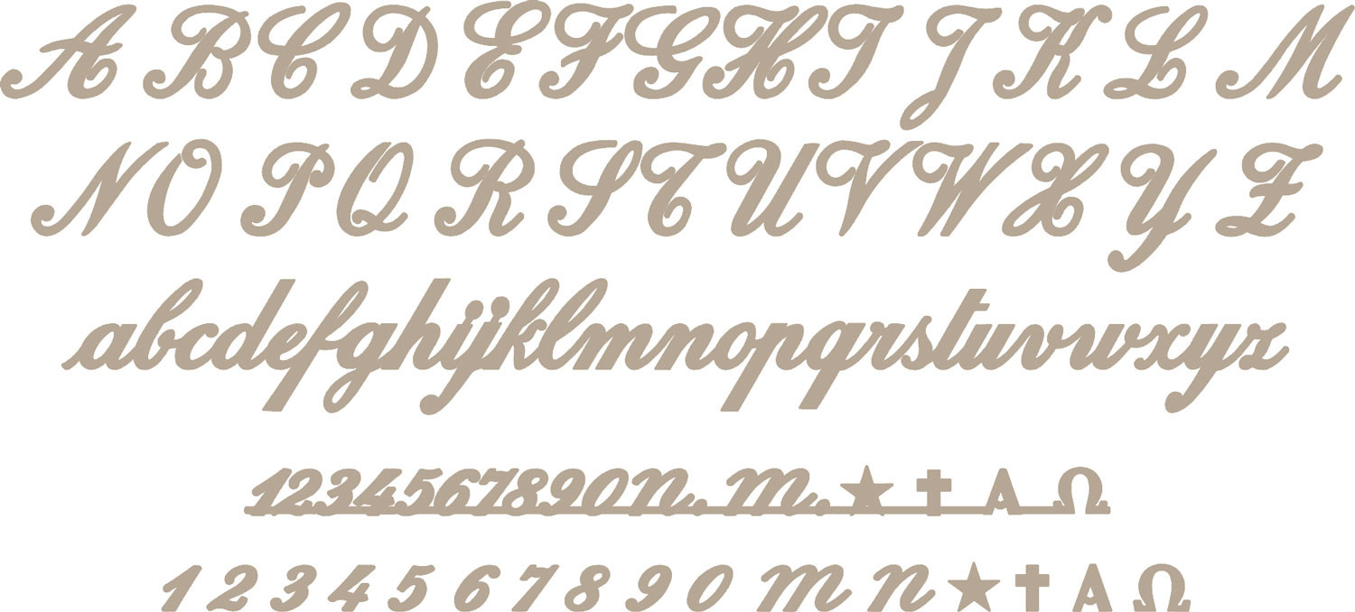 Negli ordini specificate il nome del font, l’altezza delle minuscole, lo spessore e il nome della finitura. Le lettere maiuscole sono dimensionate in proporzione.