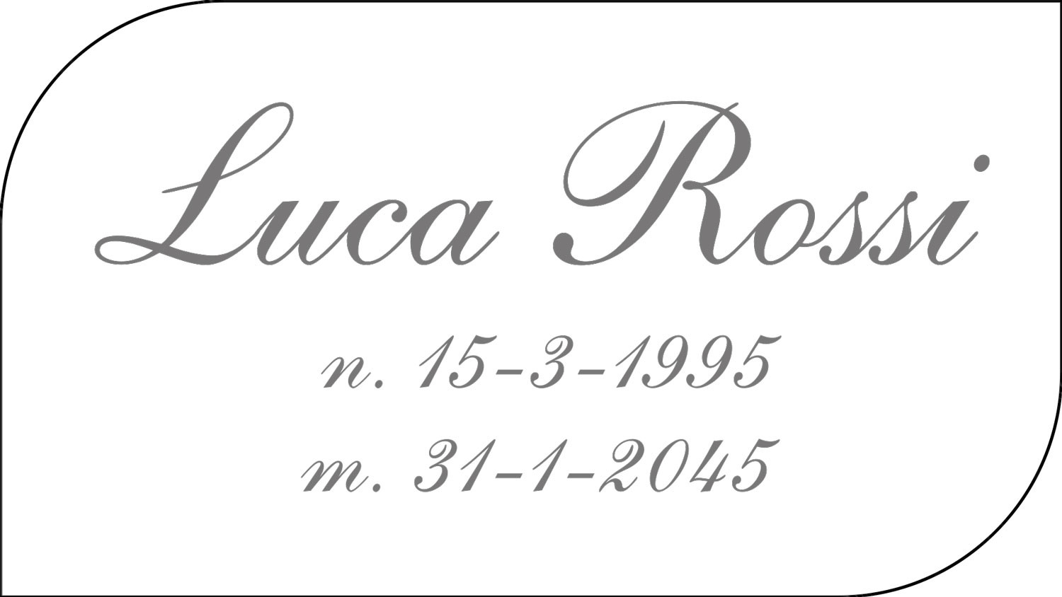 ESEMPIO 1: Forma: Foglia O - Fondo: Bianco - Font: Shelley Andante BT, colore Argento
