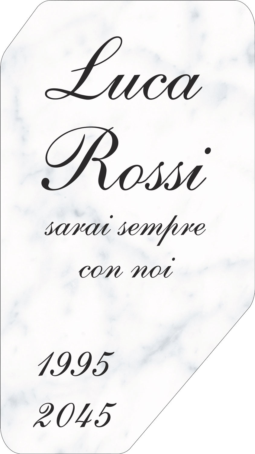 ESEMPIO 1: Forma: Icona V - Fondo: Carrara - Font: Shelley Andante BT, colore Nero