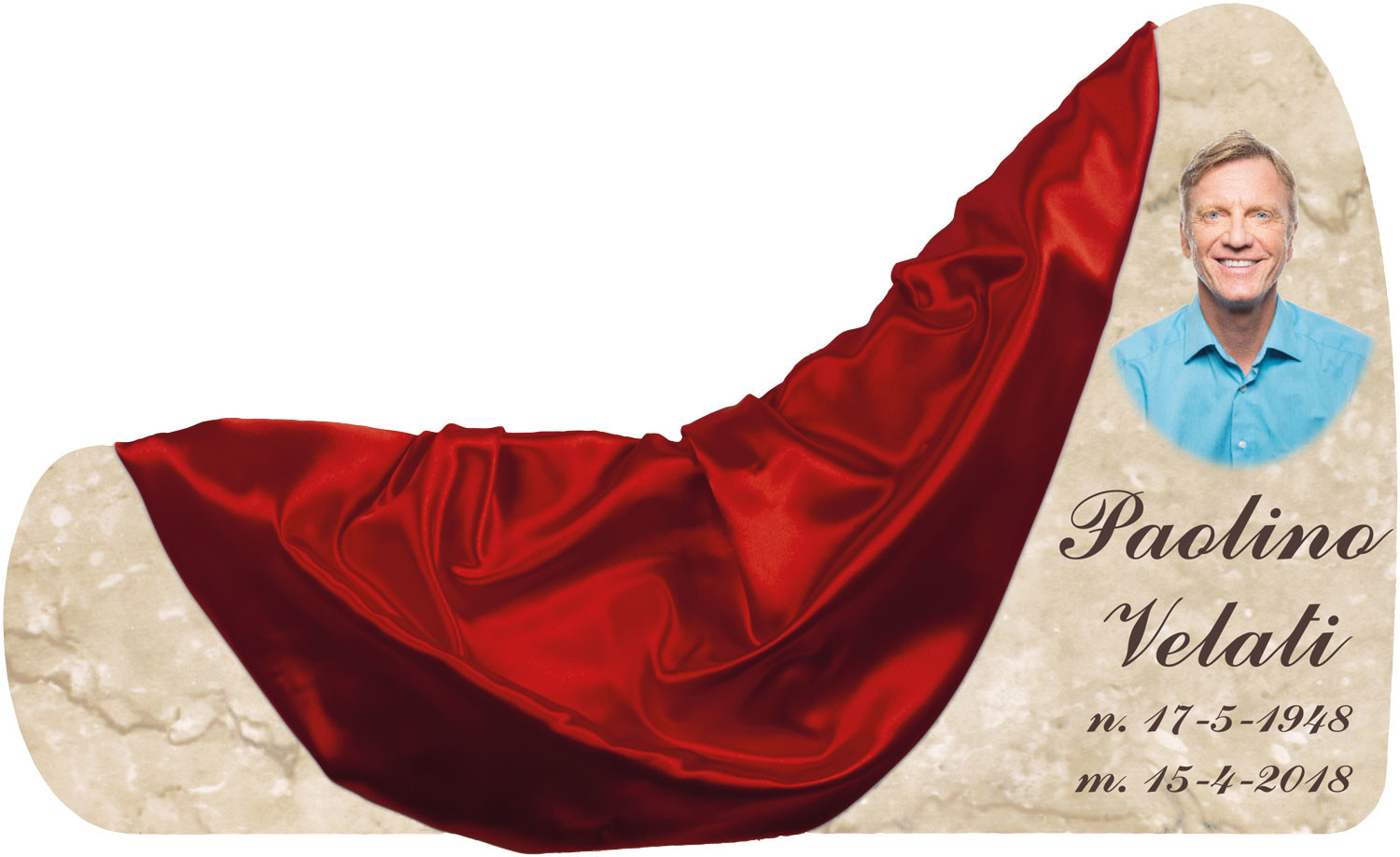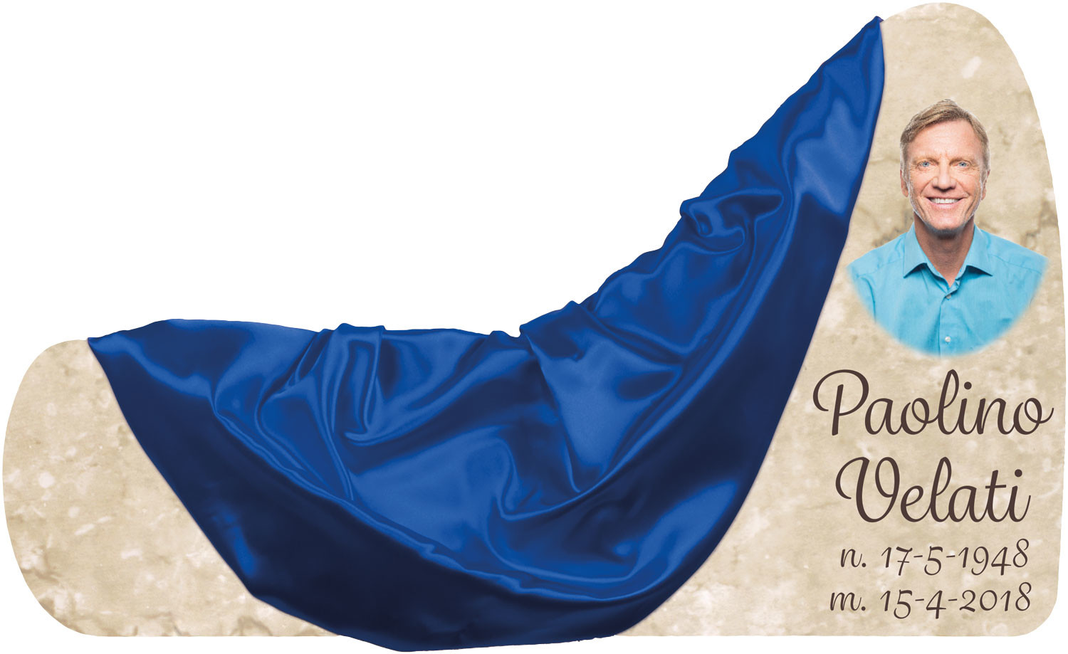 ESEMPIO 2: Forma: Baku - Fondo: Botticino - Font: Commercial Script, colore Marrone scuro