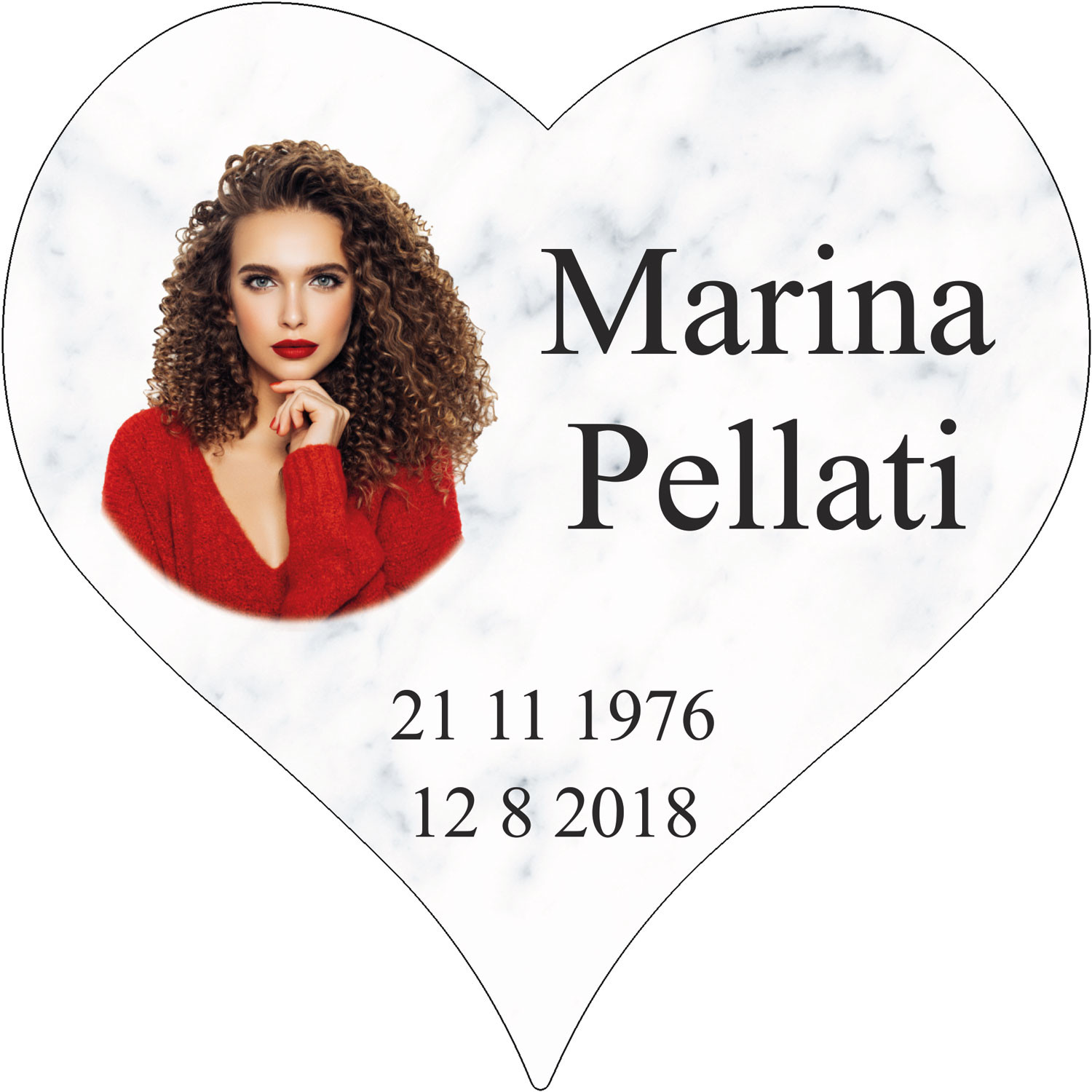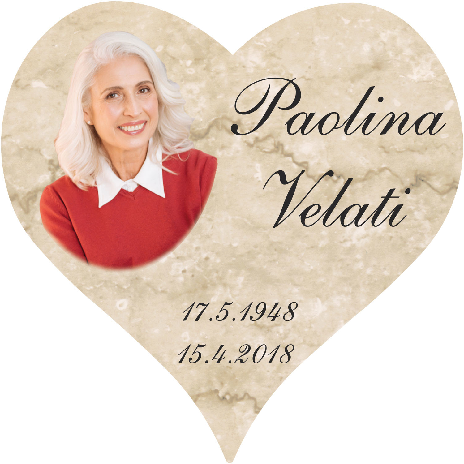 ESEMPIO 1: Forma: Cuore 2 - Fondo: Botticino - Font: Shelley Andante BT, colore Nero