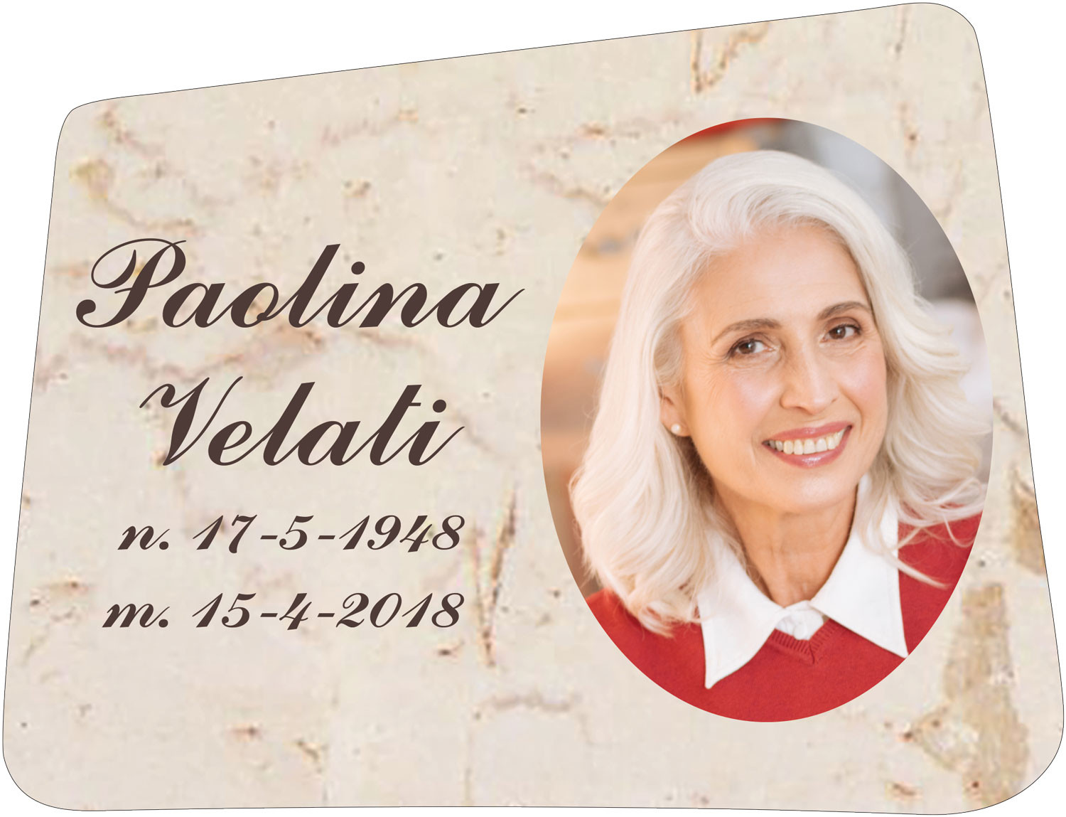 ESEMPIO 1: Forma: Dakota - Fondo: Travertino Fiorito 1 - Font: Commercial Script colore Marrone scuro