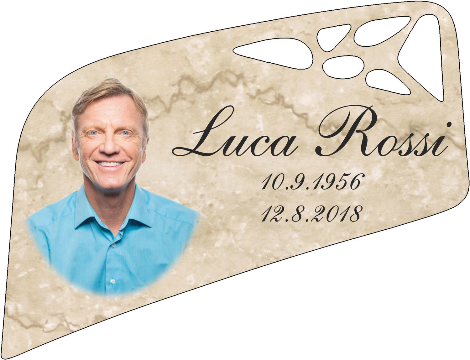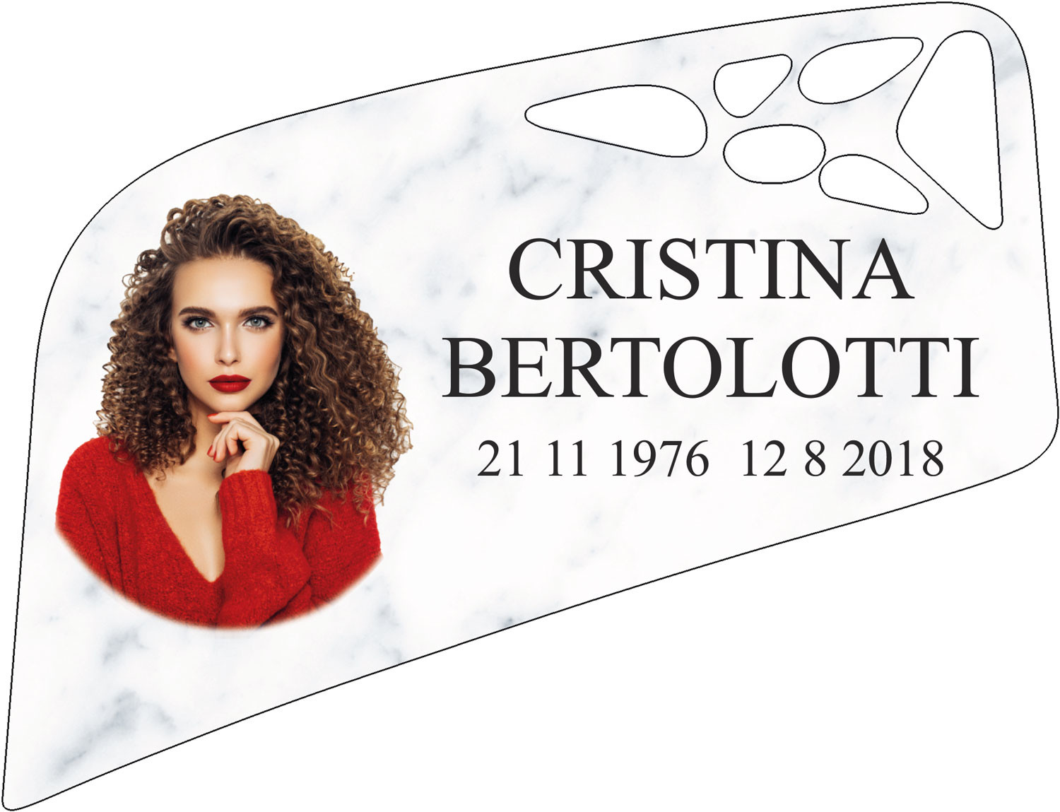 ESEMPIO 2: Forma: Florida - Fondo: Botticino - Font: Shelley Andante BT, colore Nero