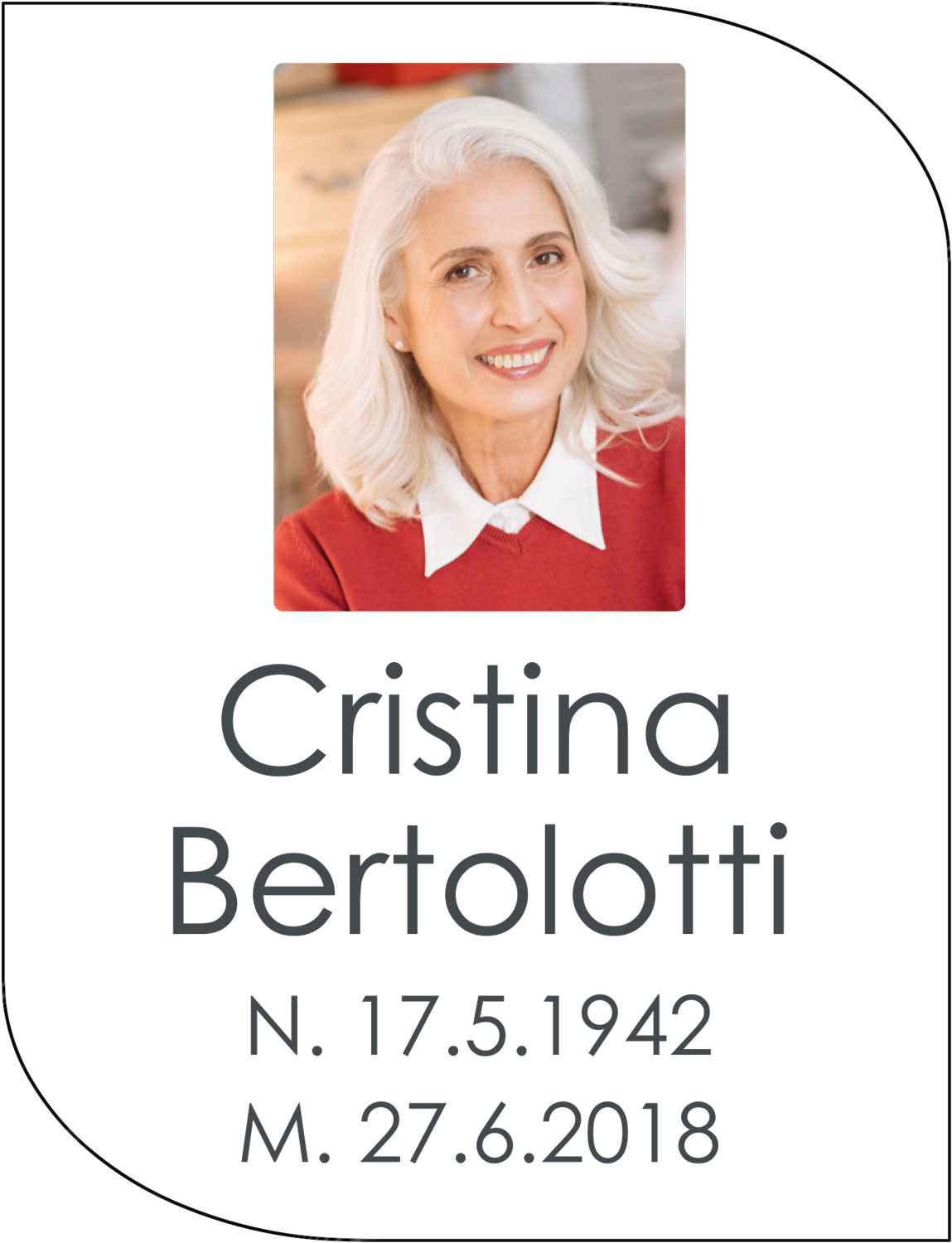 ESEMPIO 2: Forma: Foglia V - Fondo: Bianco - Font: Century Gothic, colore Antracite