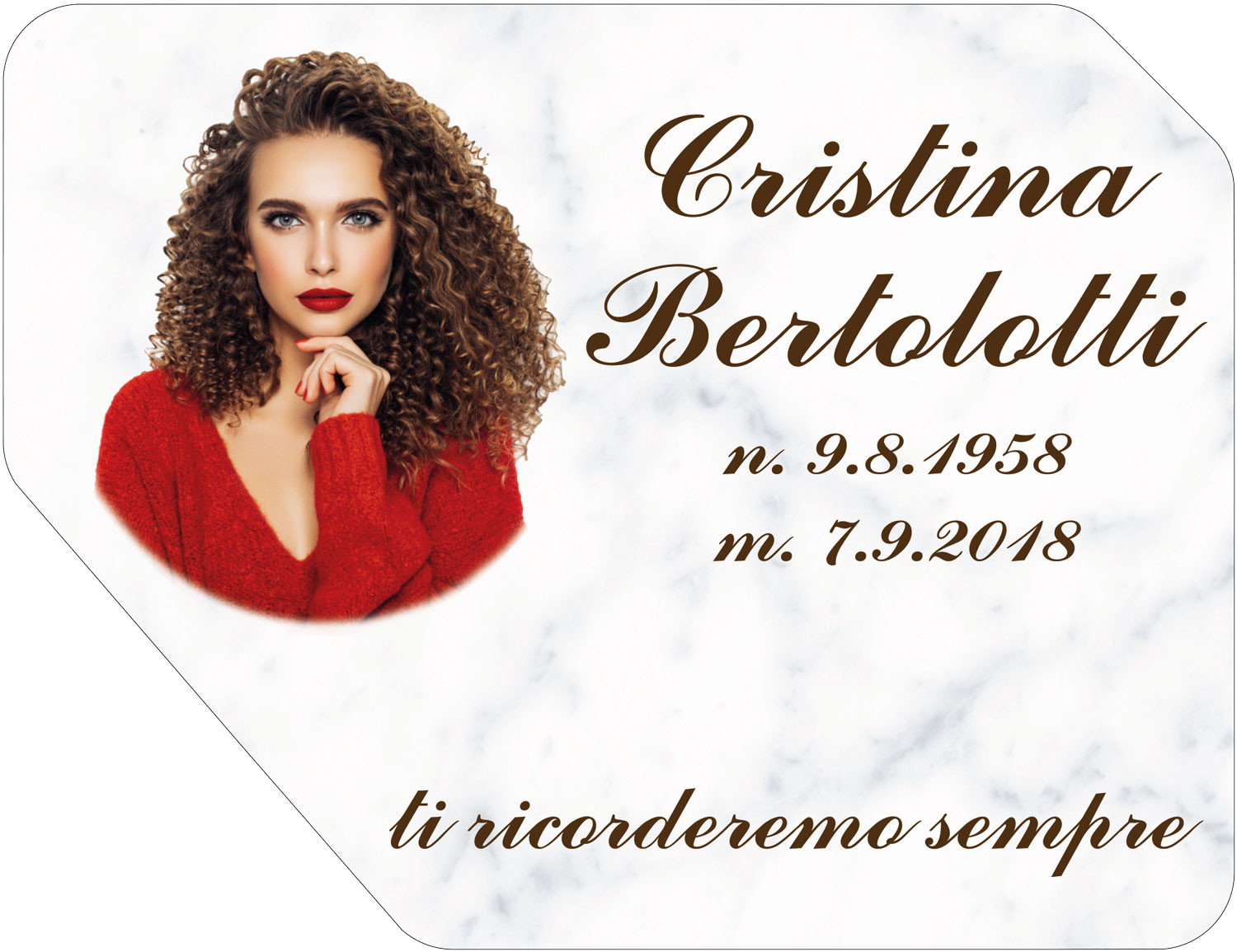 ESEMPIO 1: Forma: Icona O - Fondo: Carrara - Font: Commercial Script, colore Marrone scuro