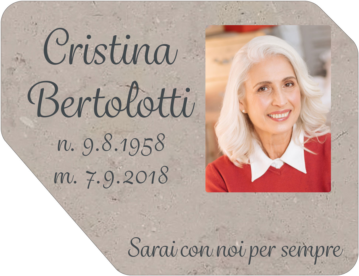 ESEMPIO 2: Forma: Icona O - Fondo: Trani 1 - Font: Grafolita Script, colore Argento