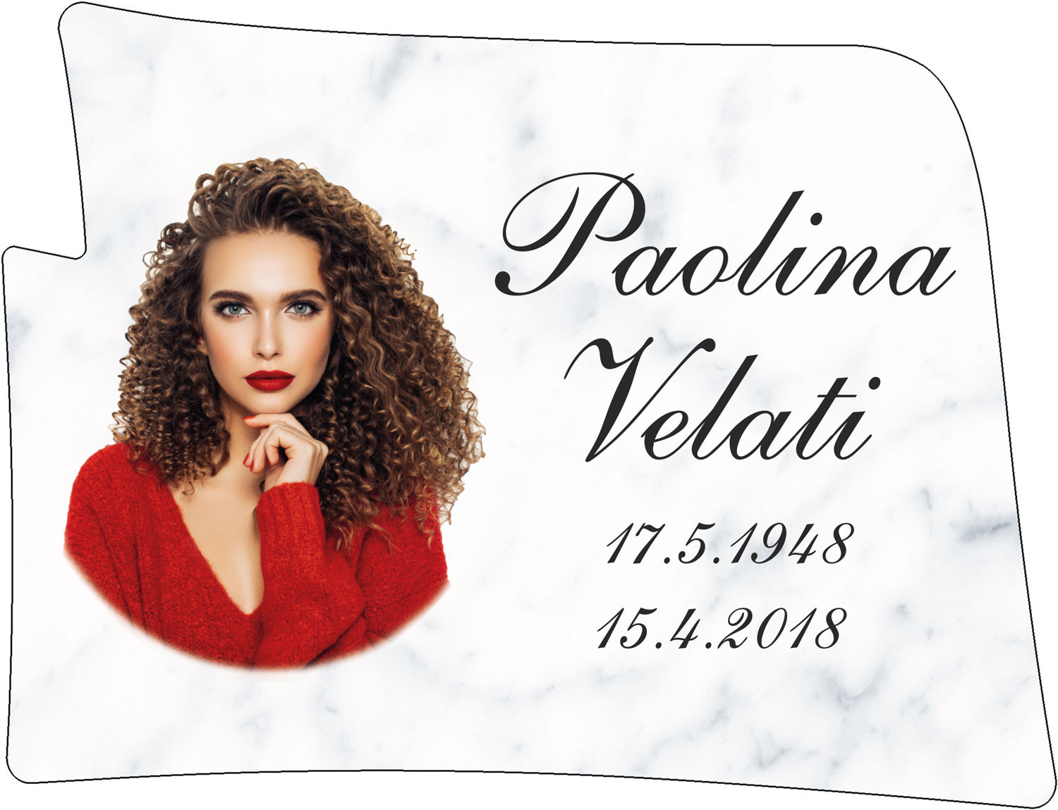 ESEMPIO 1: Forma: Omnia O - Fondo: Carrara - Font: Shelley Andante BT, colore Nero
