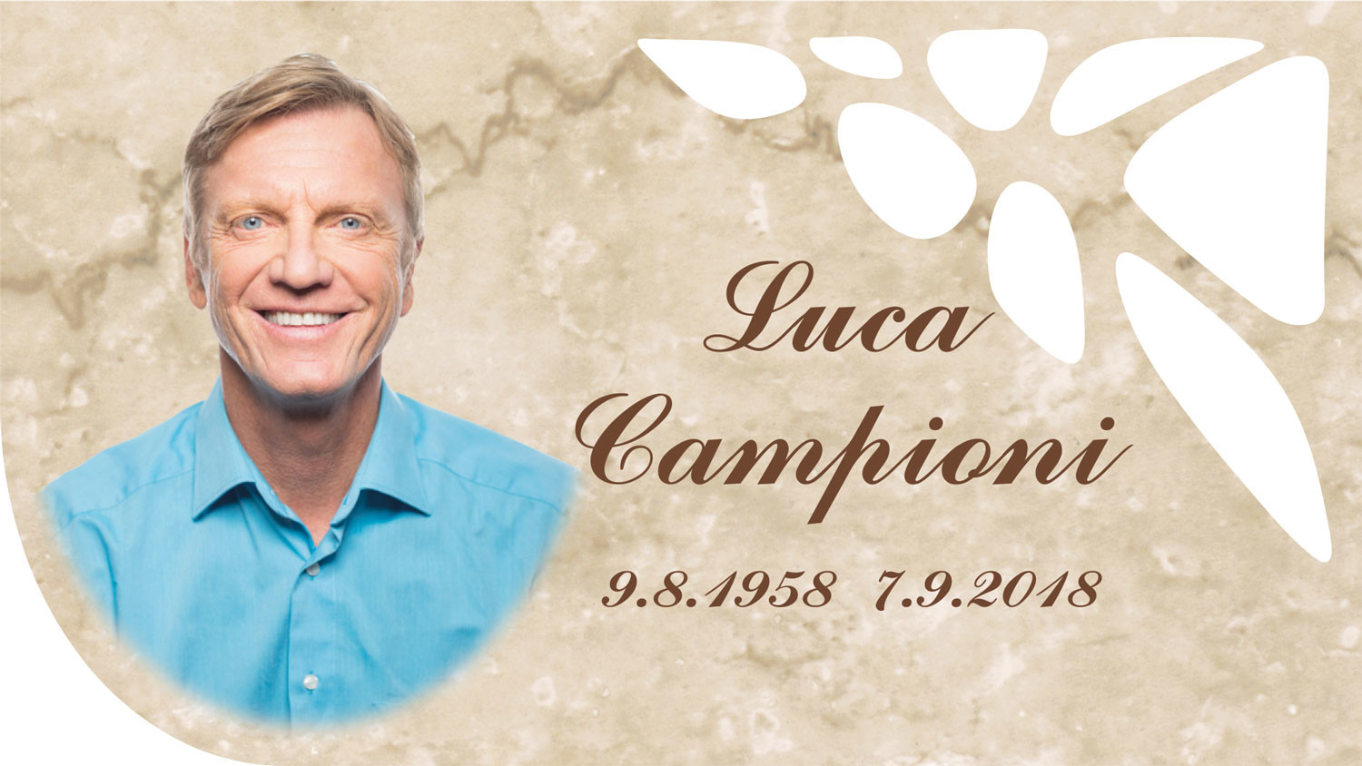 ESEMPIO 2: Forma: Yasea - Fondo: Botticino - Font: Commercial Script, colore Marrone chiaro -