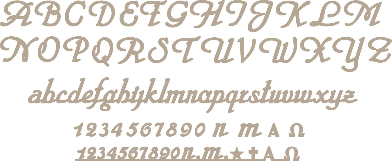 Negli ordini specificate il nome del font, l’altezza delle minuscole, lo spessore e il nome della finitura. Le lettere maiuscole sono dimensionate in proporzione.