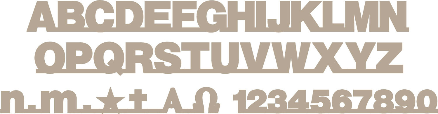 Negli ordini specificate il nome del font, l’altezza delle minuscole, lo spessore e il nome della finitura. Le lettere maiuscole sono dimensionate in proporzione.