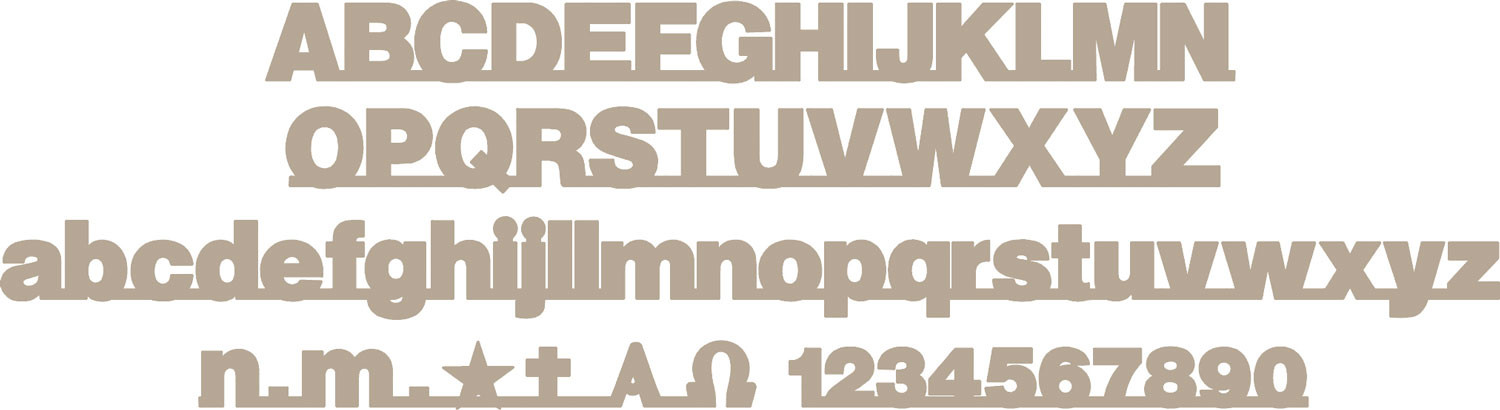 Negli ordini specificate il nome del font, l’altezza delle minuscole, lo spessore e il nome della finitura. Le lettere maiuscole sono dimensionate in proporzione.